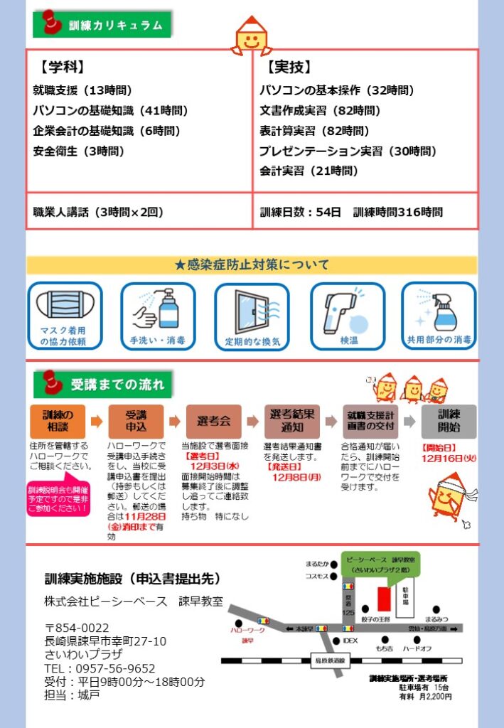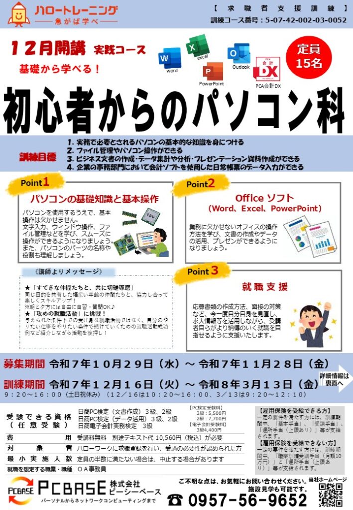 【諫早】12月開講 求職者支援訓練「初心者からのパソコン科」の募集が始まりました!